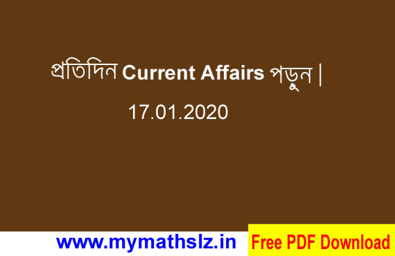 Bengali current affairs January 2020 - কারেন্ট অ্যাফেয়ার্স ।