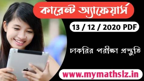 কারেন্ট অ্যাফেয়ার্স PDF / Daily current affairs PDF GK in Bengali (13/12/2020)