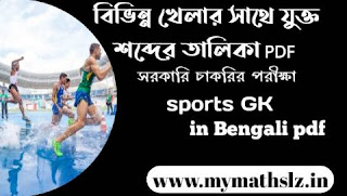 বিভিন্ন খেলার সাথে যুক্ত শব্দ তালিকা PDF / list of sport trems PDF GK in Bengali language.